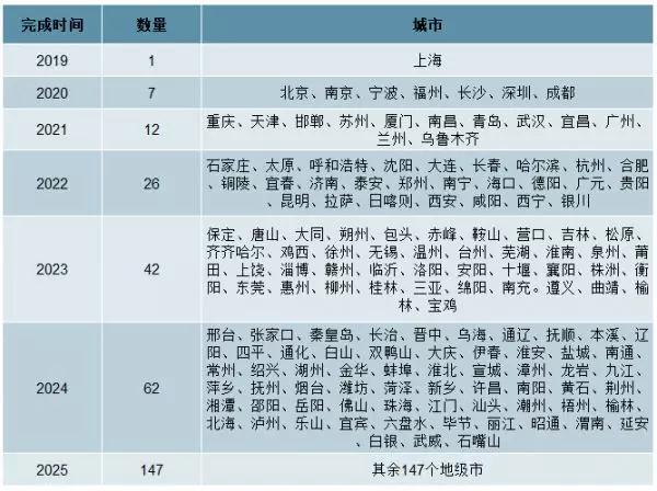 各地級城市垃圾分類推廣節(jié)奏逐步釋放。我們依據(jù)各城市已推行的垃圾分類政策及各城市生活垃圾清運量及處置規(guī)模等屬性推測垃圾分類政策推行進度。考慮到政策實際推行情況,保守假設(shè)垃圾分類年化市場釋放節(jié)奏為:2019年上海;2020年北京/南京/成都/深圳等7個重點城市;2021年重慶/天津/蘇州等12個重點城市;2022年46個重點城市中剩余的26個重點城市;2023年保定/大同/吉林等42個地級市;2024年邢臺/淮安/九江等62個地級市;2025年剩余的地級市。在空間測算中均以該推廣節(jié)奏為前提進行測算。
